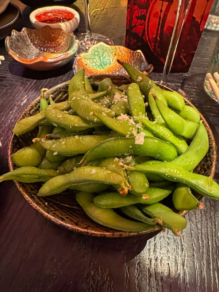 The Steamed Edamame with salt and chilli dip was a delightful first for us – simple, fresh, and surprisingly moreish (and thanks to a helpful tip from our lovely waitress, we didn’t try to eat the pods!). Familiar favourites like the Ssamjang Chicken Yakitori hit all the right notes – no surprises there! However, we loved everything else too, particularly loving the Char Sui Barbecue Glazed Pork Belly and the Avocado, Cucumber & Asparagus Maki Rolls both of which have earned permanent spots on our go-to list.